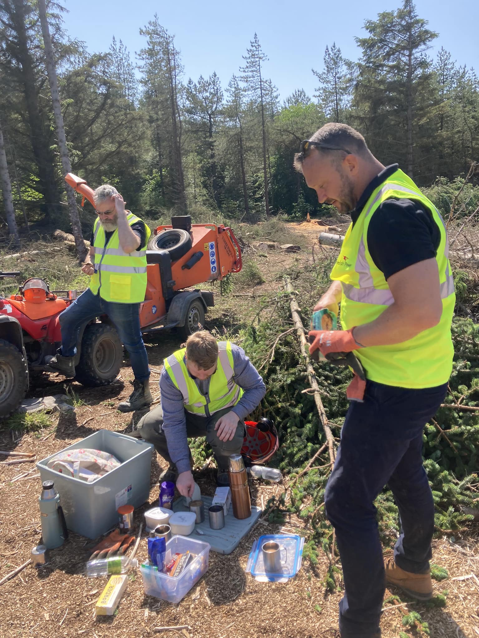 - Our volunteers also carry out much of the work of harvesting timber for our wood fuel business. This includes felling trees, cutting them into logs, chipping branches and splitting the logs for sale as firewood.